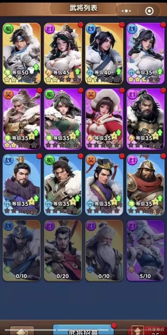 S3新出来的武将,再搭配以刘备、曹操、周瑜为核心的阵营,多队列培养武将。