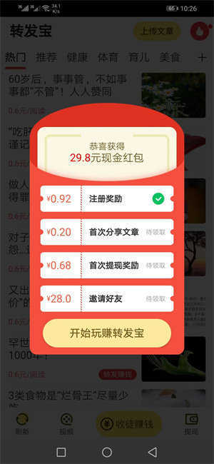 自己阅读可以赚,将资讯内容分享到个人朋友圈,还有二次收益。