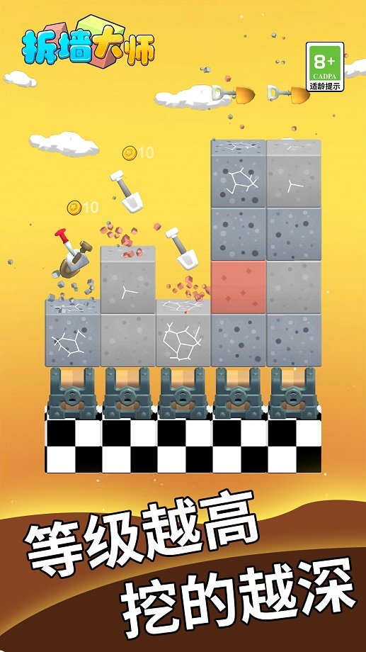 拆墙大师手游是一款非常有趣的模拟闯关游戏,玩家在游戏中通过不断的破坏挖掘来获取各种宝物,挖掘的越深获得的高等级物品就越多,不断的合成手中的铲子可以提高你的速度,感兴趣的朋友快来下载。