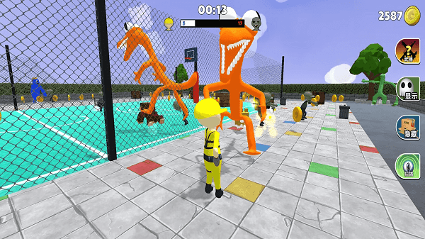 彩虹朋友们简单的操作模式,可以快速上手,参与各种捉迷藏战斗。