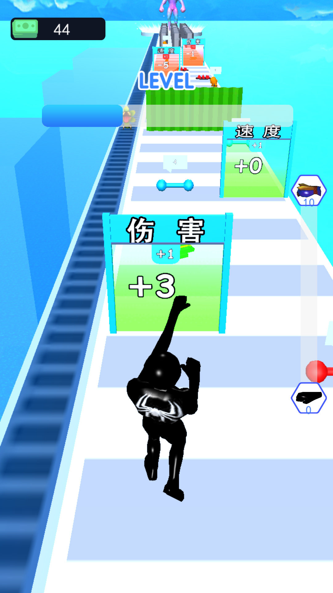 1、操控毒液人在赛道上疾驰,躲避障碍物并吞噬低级细胞以获取能量进化;