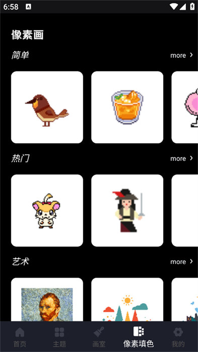 2、拥有各种各样的像素画让用户们去进行填色的操作;