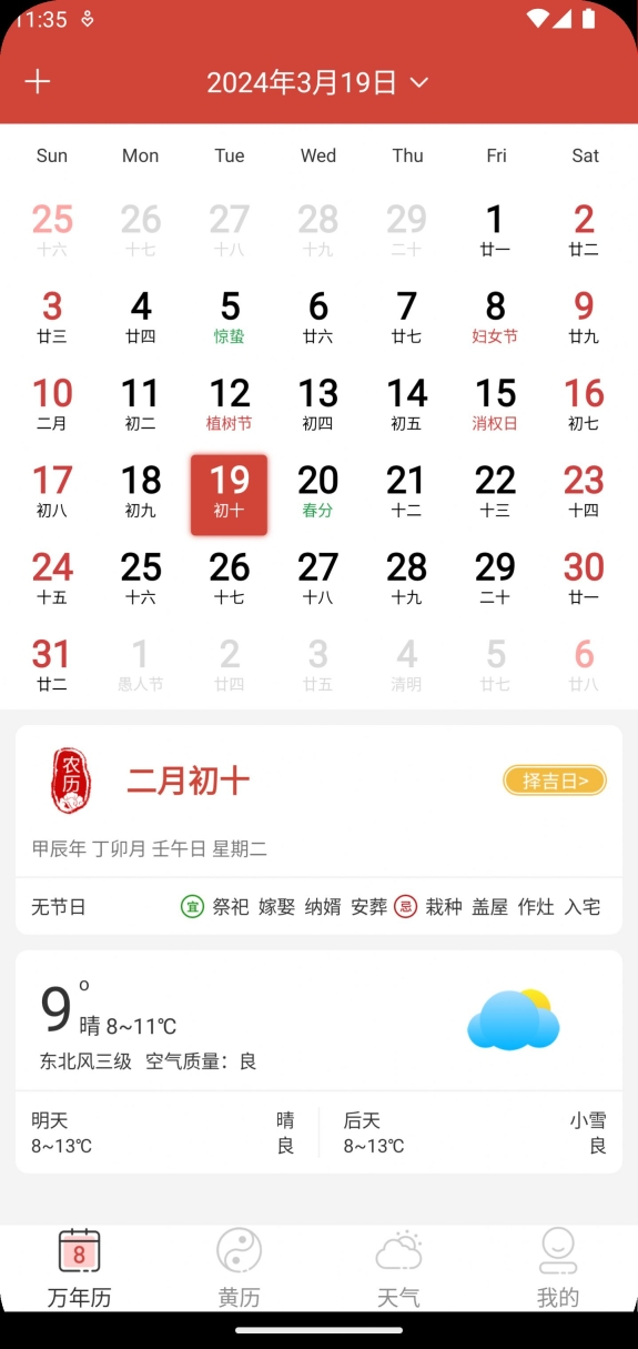 1、提供的日历类型极为全面,涵盖万年历、黄历以及月历等多种类型。