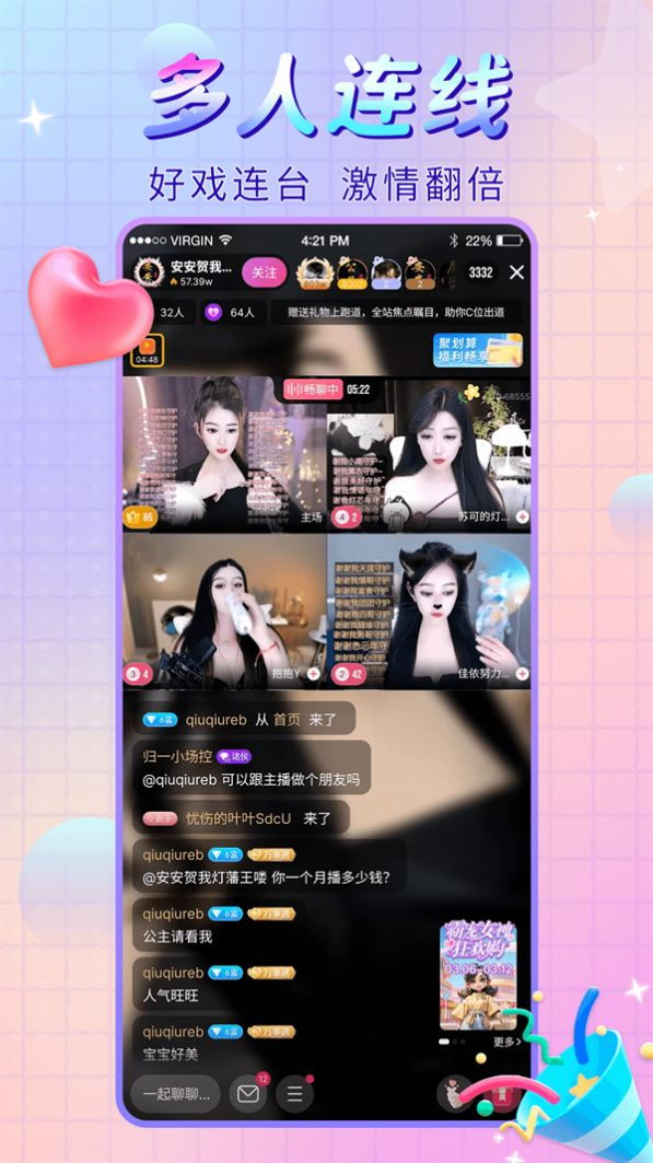 1、同时可以多人一起在线来连线,根本不用担心没有话题。