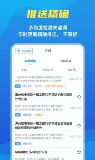 3.招标订阅:全国各行业招标信息智能订阅,微信+APP极速推送。