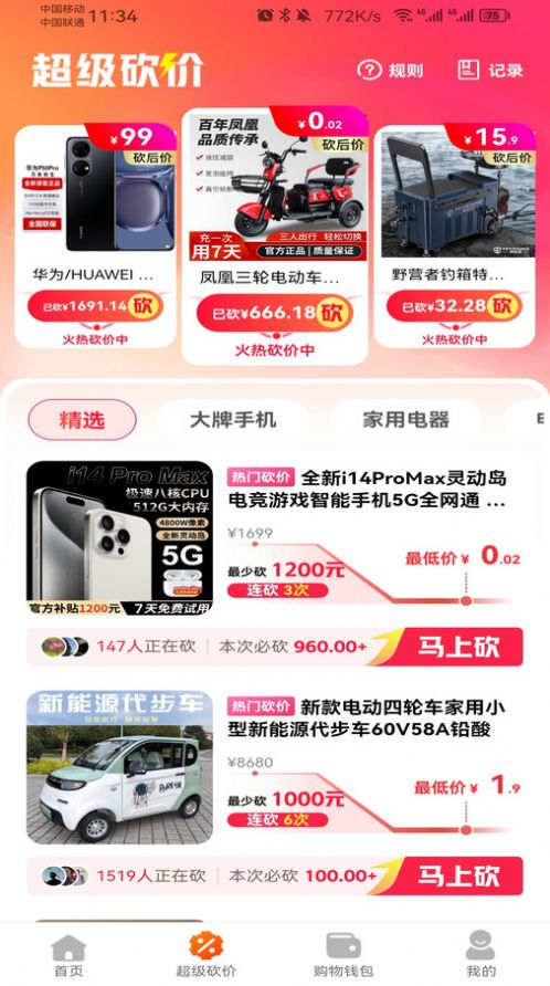 2、随时可以在线来进行砍价,让更多的人可以直接的参与。