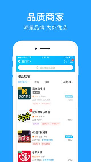 1、直接选择派送范围,便可快速查找到你周边的所有美食店铺,餐品列表一目了然;