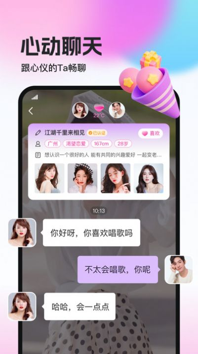 3、在线互动毫无限制,畅享更优质的交友服务。