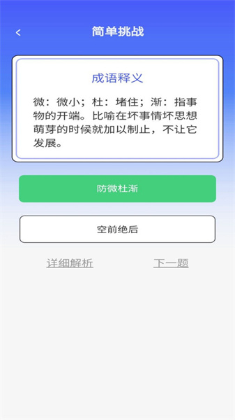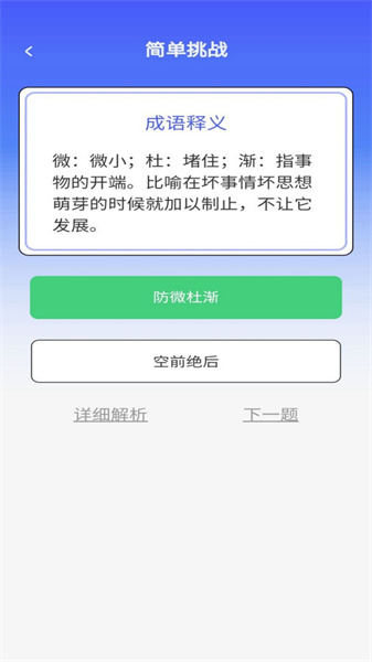 1用户能够随时开启各类难度各异的挑战,借此逐步提升自身的成语知识水平。