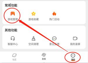 1.在软件主界面点击【我的】,在常用功能一栏选择【游戏管理】