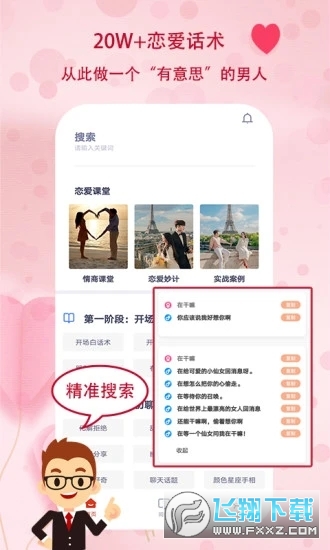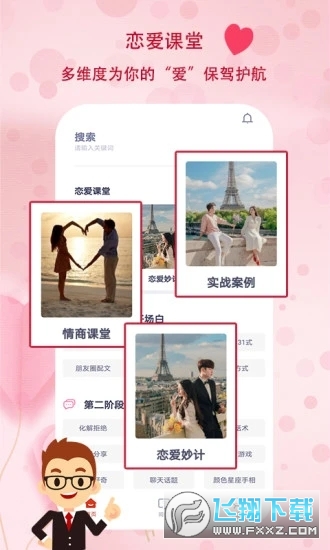 恋爱话术——超 20w 话术储备,从此不惧尬聊,一键搜索,海量话题任你选,尬聊轻松化解; 恋爱妙计——精心整理 1000 条追求女生的实用小策略,帮你成功追到心仪女生,避开恋爱路上的坑洼; 恋爱问答——专业优质导师实时在线,为你解答各类情感困惑,助力你的恋爱之路顺风顺水; 情商课堂——带你洞察喜欢的男神/女神的内心想法,全方位提升气质与情商,开启更优质生活篇章; 实战案例——情感导师凭借丰富恋爱知识与实战经验,众多实战成果可供随时查询,迅速提升你的聊天思维,助你瞬间变身恋爱高手。