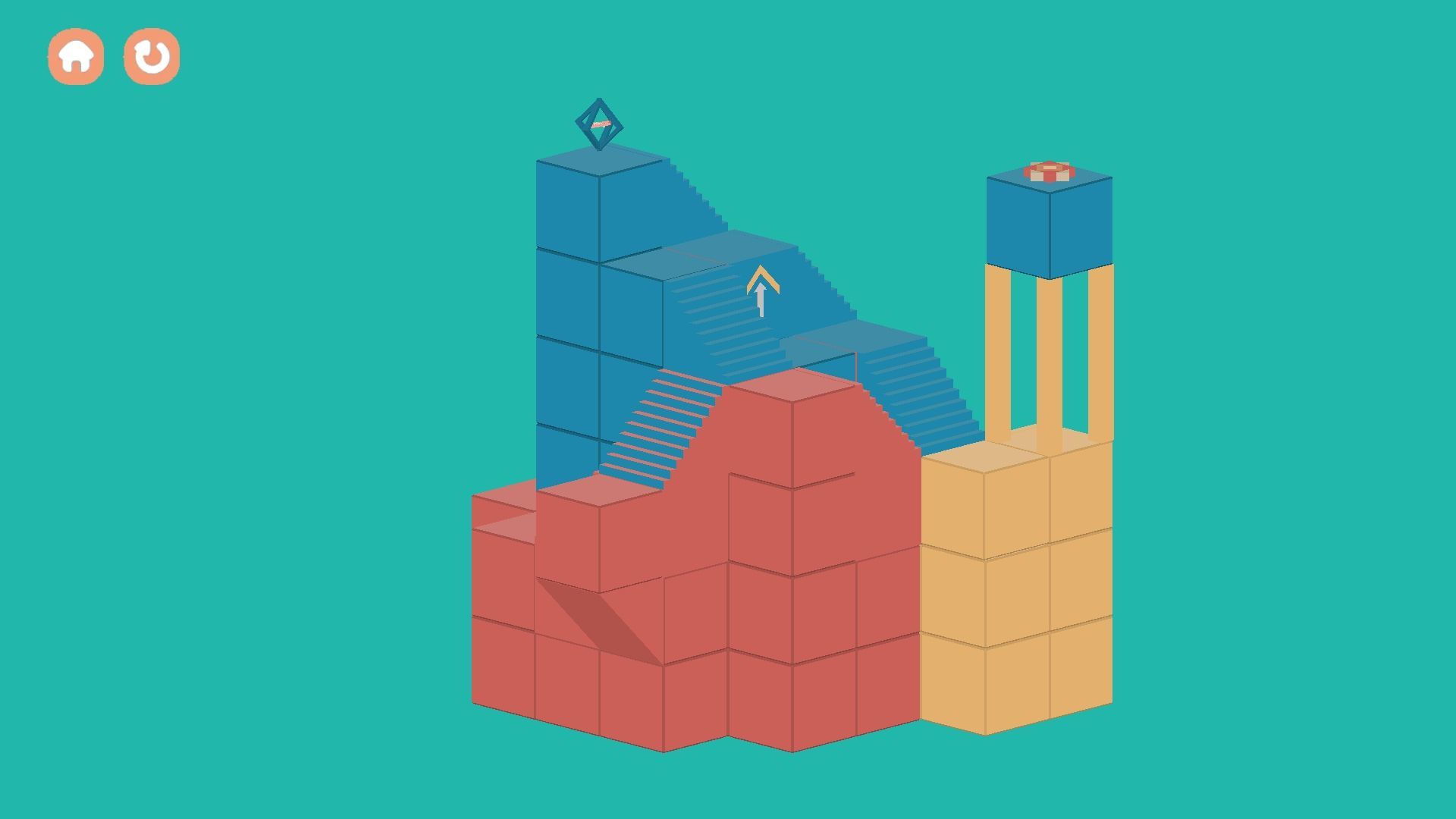 如果在三维视角下,发现没有路可以走了,那么可以走到红色或蓝色的方块上,双击屏幕,切换到二维视角下。查看是否有红色/蓝色的方块与脚下的红色/蓝色的方块相连续,若有,点击红色/蓝色的方块就可走过去。即使这两个方块在三维视角下并不相连,也可以在二维视角下走过去。