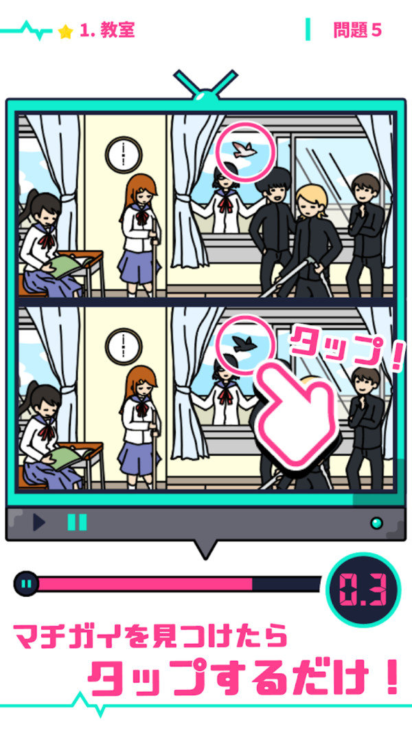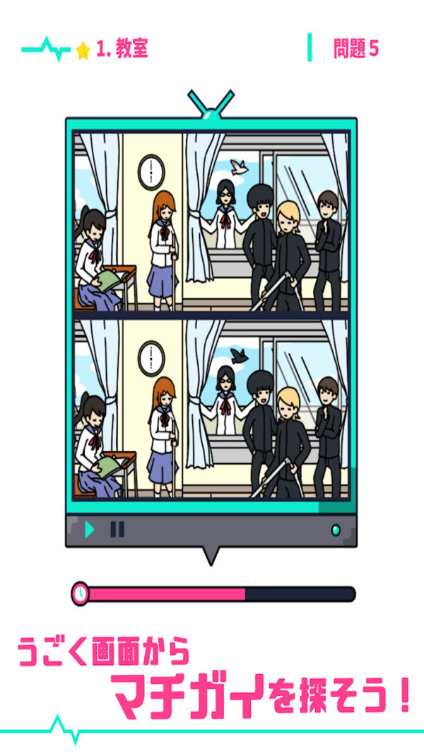 通过动画寻找图片中的错误。 在单纯的影像中只有一个错误哦。