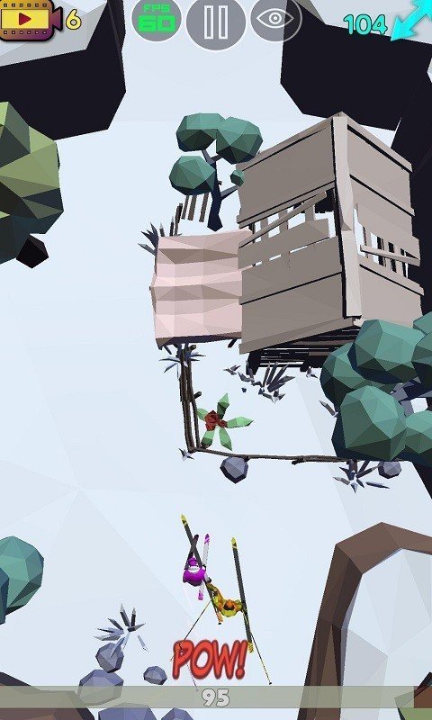 1、采用3D的游戏机制,高清细腻的滑雪场景,很多障碍物体的阻挡,玩法多样;