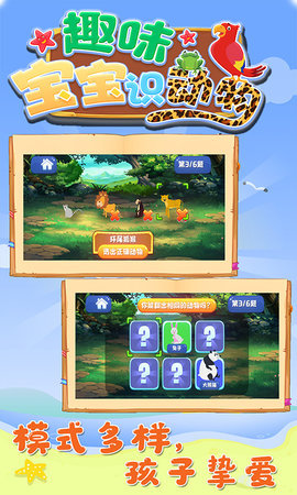 一款动物最全的宝宝游戏,基于海外少儿智力发展研究所得的阶梯式育儿方法,帮助2到6岁小朋友在大脑发育的黄金时间吸收知识,并灵活运用知识选择和记忆。内容丰富包含世界各个大洲,帮助少儿了解地理,根据大洲中包含的不同动物,结合真人普通话语音介绍,扩招宝宝知识面,通过题库,选择,记忆三种游戏模式,使得宝宝提升观察能力、记忆能力、认知能力、开发左右脑智力。