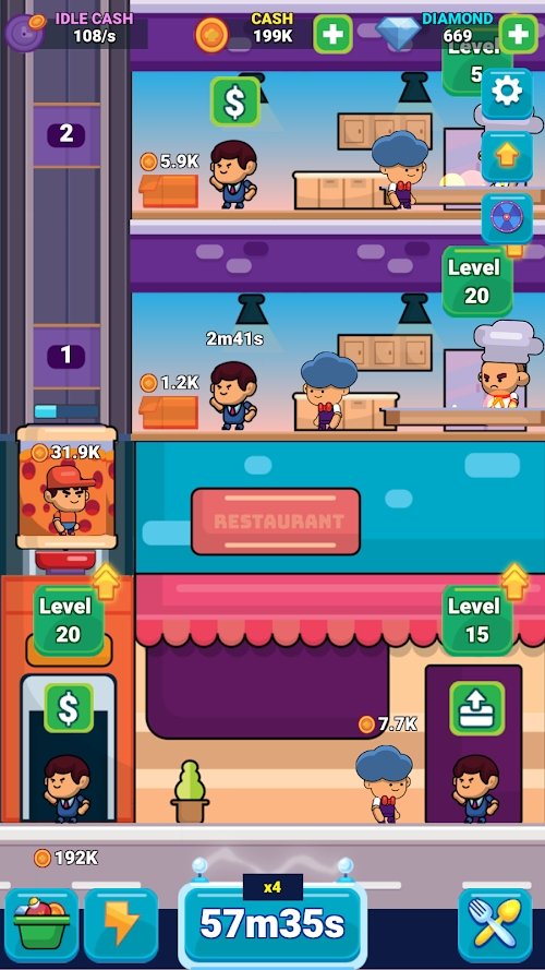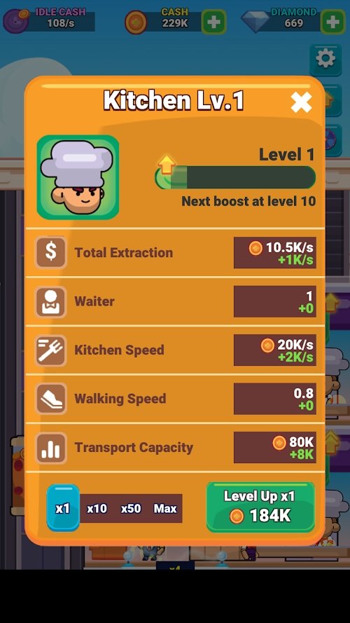 2、新品菜谱和美食,享受餐厅的经营人生,员工的升级可以提高赚钱速度。