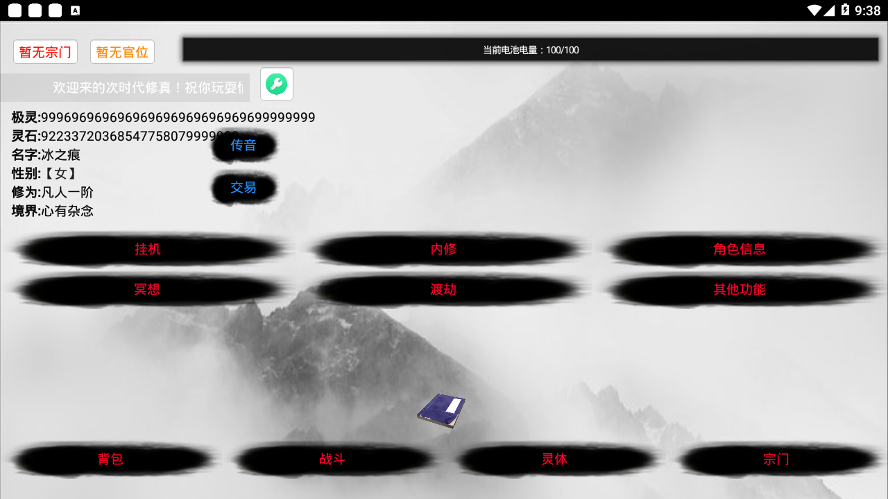1、游戏界面简洁清晰,系统选项齐全,包括背包、战斗、门派等