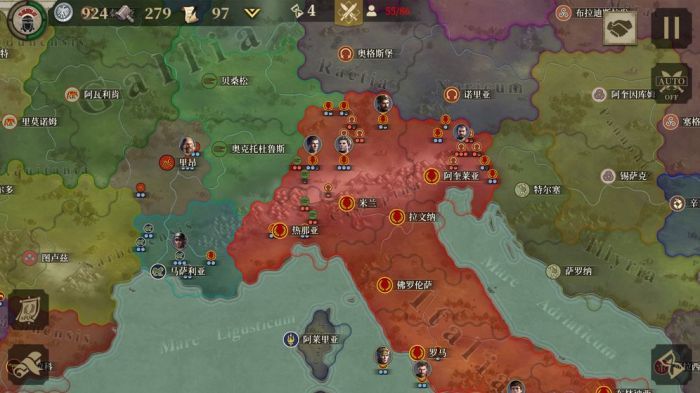 3.全新征服模式,玩家从世界一角向全体大陆进军,将世界变为罗马版图。