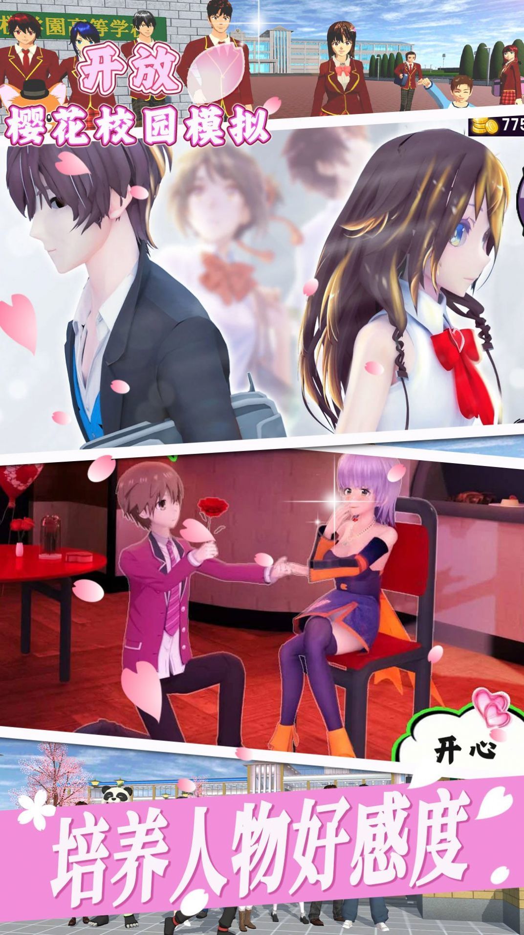 1、开放樱花校园模拟中文版拥有精美的樱花画面,体验校园生活的美好氛围。