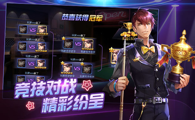 值得一提的是,《腾讯桌球》三大玩法中都拥有多场赛事系统,玩家通过金币,即可进入不同场次与不同的玩家进行匹配竞赛。八人锦标赛中的赏金十分丰厚,只要通过车轮战战胜对手晋级,冠军选手就可获得赛事积分奖励以及其余7人的所有奖金,竞技奖励可谓十分丰厚!此外,赛事系统在为游戏增加竞技平台的同时,玩家还可通过赛事积分、财富、魅力值进入游戏的“世界排行榜”中,享受名次与荣誉带来的畅快之感!