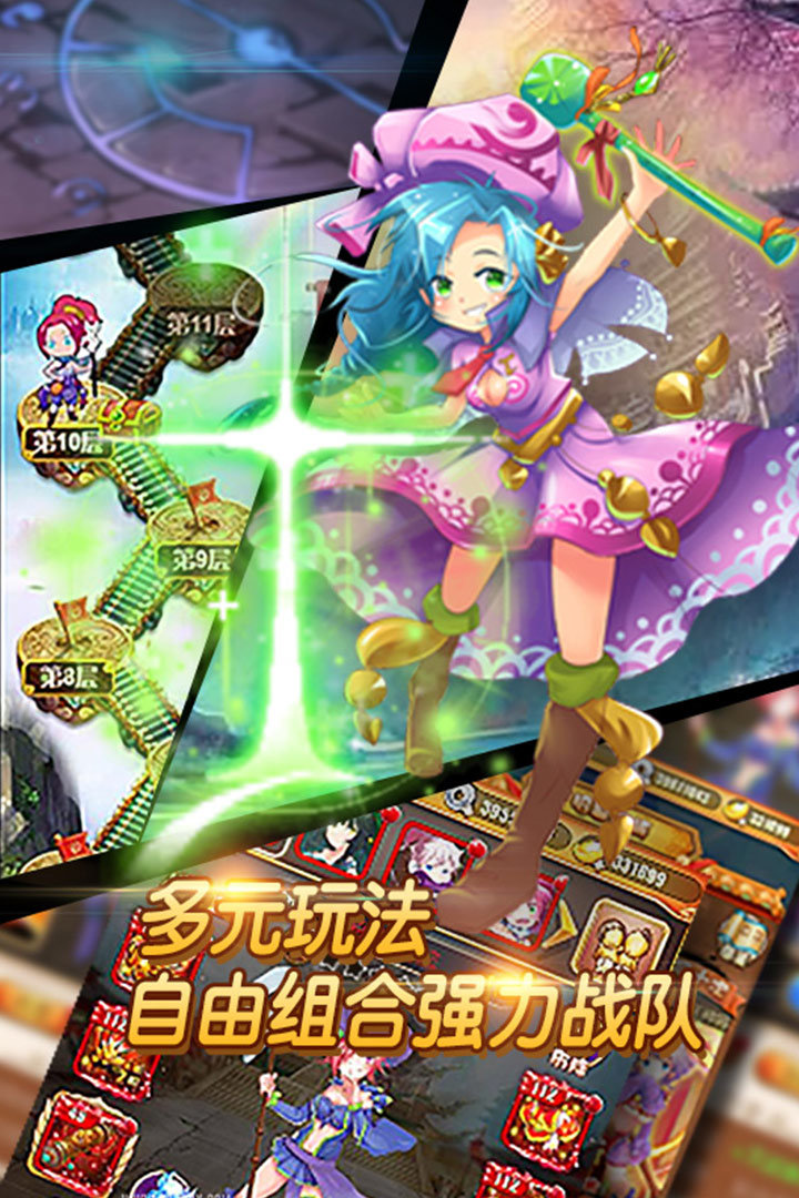 游戏战斗采用AI全自动战斗模式,RPG部分采用闯关模式,更多更*的关卡随玩家闯关开启,在关卡战斗中可以获得装备、英雄、游戏币等,在日常互动方面玩家可以