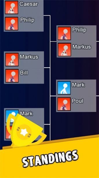 1、火柴人布娃娃足球滑动屏幕来控制火柴人球员的移动,确保他们在比赛中移动。