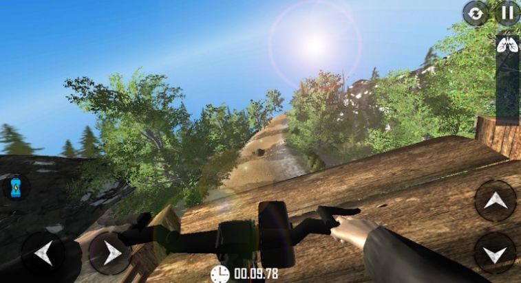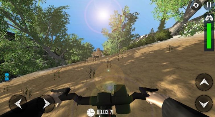 2、山地自行车挑战模拟器中使用手机重力感应,操作自行车的转向和加速等。