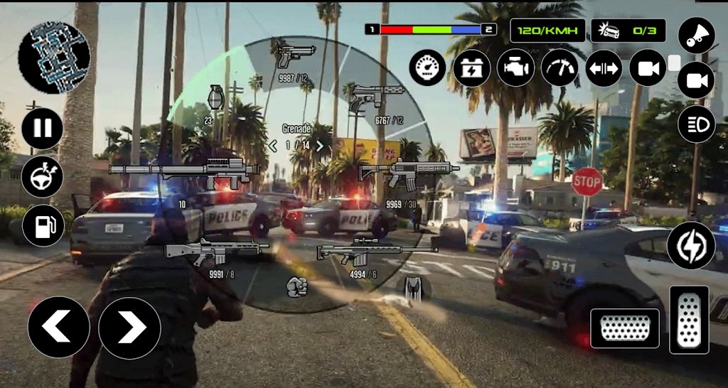 玩家还可以随意驾驶汽车,逃避警察的追捕,或者对警察进行攻