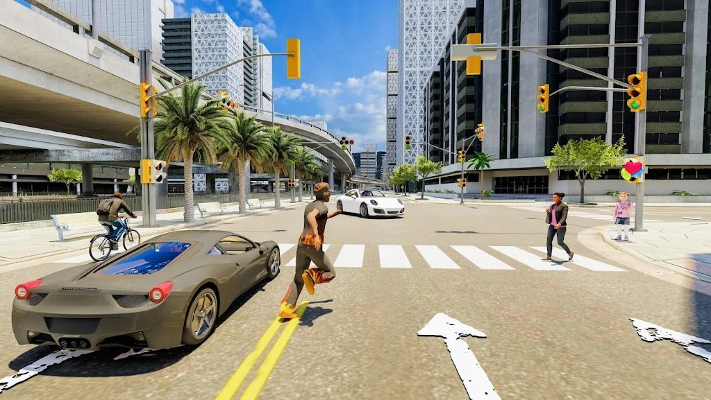 2、玩家可以选择扮演超级英雄或者小偷的角色,在城市中进行对决;
