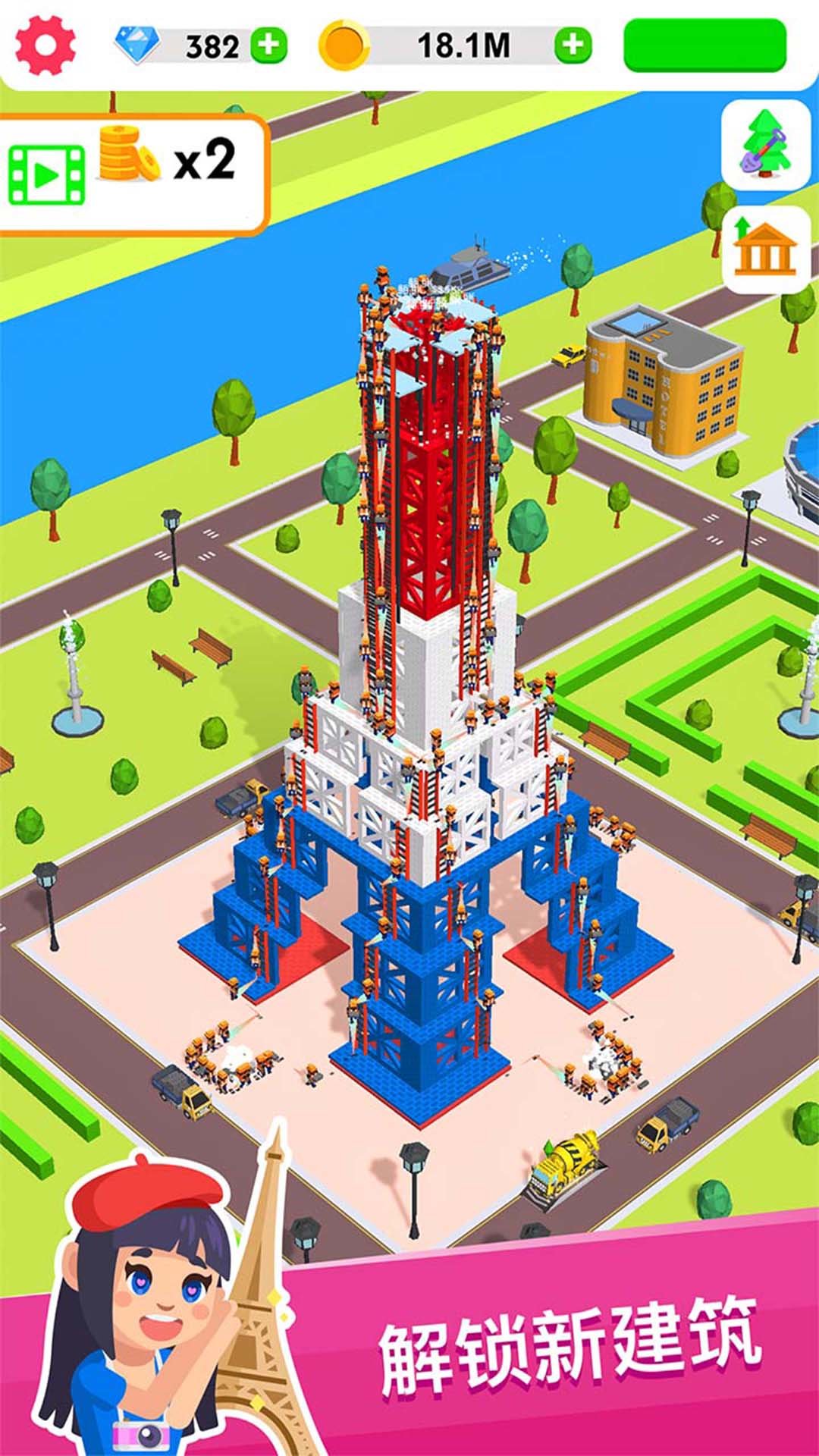 我手工贼溜中成为建筑工人来打造海量名胜古迹的休闲游戏,
