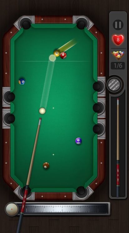 2、多种不同难度和挑战的关卡,让玩家提升自己的台球技术;