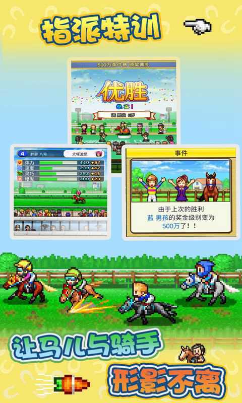 2、赛马牧场物语经典像素游戏品质,让您体验最独特的玩法和模式。