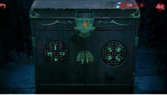 来到宗祠位置点击台阶处的柜子获得“上、左上、左、下、右下、左下、右、右上”线索。