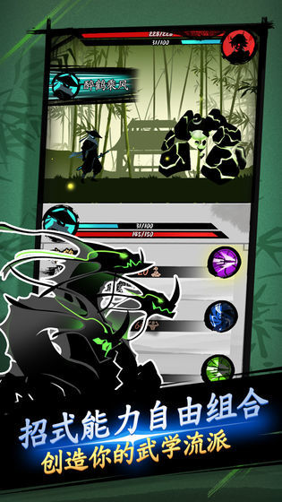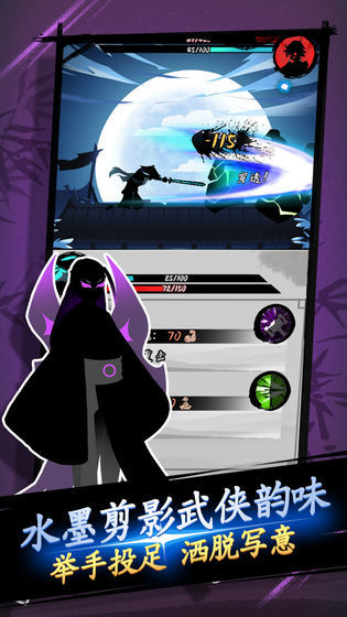 1、水墨画风的剪影武侠风格,海量的关卡随机生成挑战。