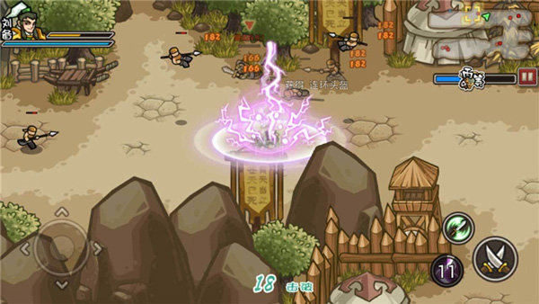 小小三国无双中玩家在闯关过程中可通过技能、攻击进行无限的连招,让你体验无限连招快感,全屏秒杀