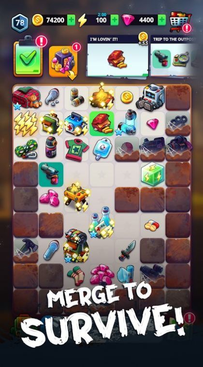 1. 将相同的生存资源逐一合并,获得更高级资源,为末日生存提供越来越多的帮助;