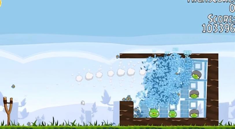 2、愤怒的小鸟万宁版中利用小鸟的特殊技能破坏障碍物,实现更高分数;