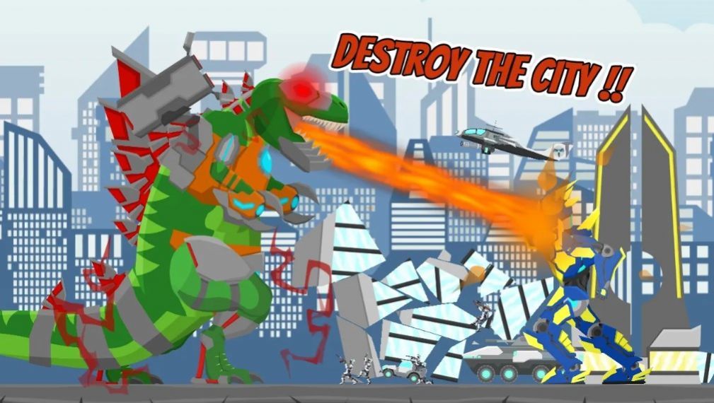 机甲恐龙城市狂暴自由操控你的机甲恐龙,在城市中展开激烈的战斗对决。