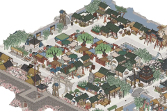 ▪商业区往东边过桥延伸,酒家驿站、烟花工坊作为纺织工业区的过渡,同时又以一块牌坊相互隔开。