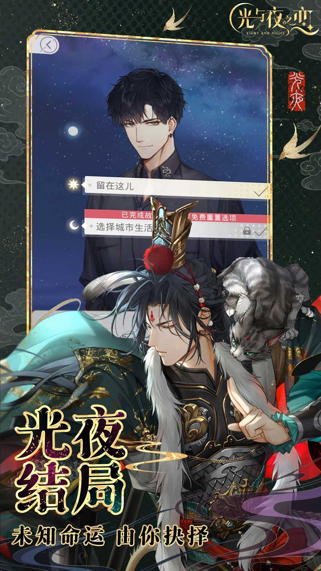 《光与夜之恋》是一款 都市奇幻恋爱手游,主打 “昼夜双面” 世界观与 沉浸式剧情互动。玩家扮演新人设计师,卷入 光族(人类)与夜族(超自然存在) 的纷争,与 五位身份迥异的男性角色 展开命运纠缠。游戏以 高质量Live2D和多结局分支为核心卖点。