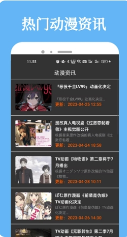 2. 设计简洁直观的动漫选择界面,助你快速定位感兴趣的内容,惬意自在地领略动漫的精彩魅力。