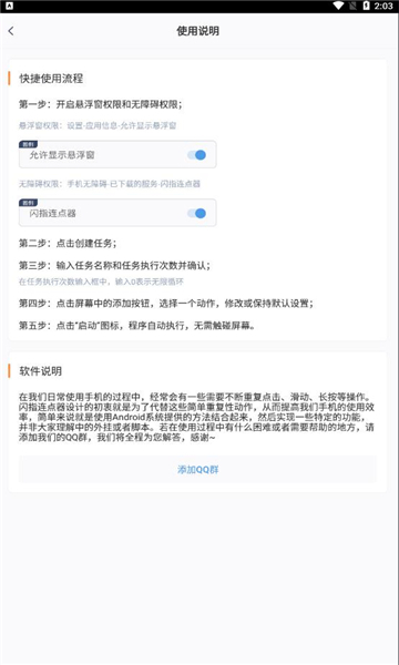 1. 打开从本站下载的闪指连点器app。在进入软件前,需先开启权限,如此方能为用户提供更优质的服务。