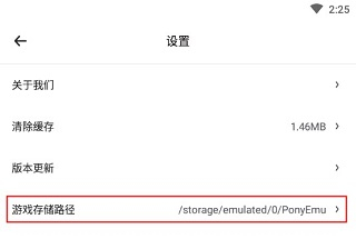 在此处能够看到版本更新信息以及游戏的存储路径,玩家此前下载的全部游戏都会保存至:/storage/emulated/0/PonyEmu 。