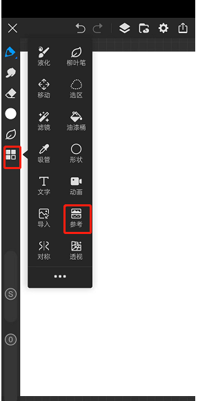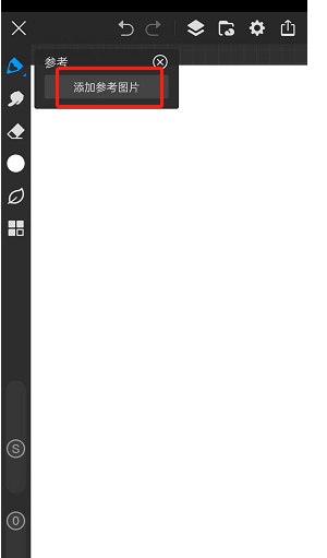 3. 点击之后,在画布的左上角会出现一个名为【参考】的小界面,此时需选择【添加参考图片】。
