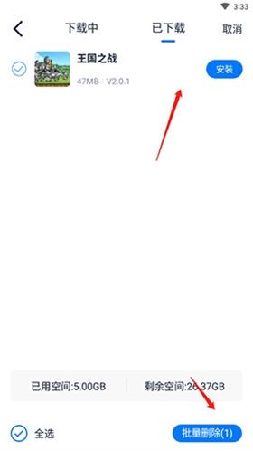 2、进入下载页面后,长按并选中想要删除的游戏,接着点击【删除】选项,就能完成删除操作。
