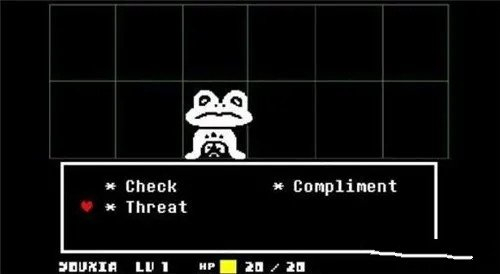 除了击杀怪物,玩家还能在“act”动作选项里选取对应的行为,选择后怪物会给出相应反应,并通过文字或画面呈现在上方的对话框中。