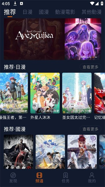 4.登录后在【频道】找到感兴趣的番剧点击进入即可观看,可根据需要开关弹幕或是发送弹幕