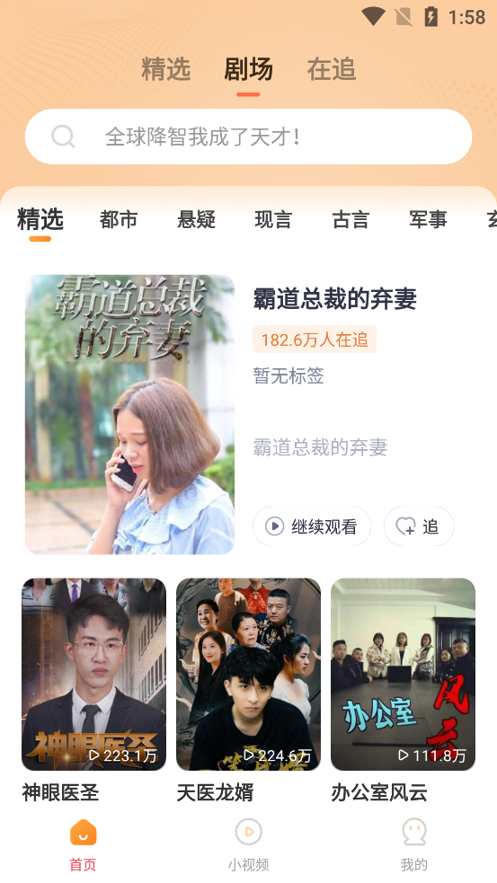 好看免费短剧app是一款备受欢迎的短剧在线观看平台,提供了海量的热门优质短剧资源,旨在满足用户的不同需求。该平台上的短剧类型非常丰富,包括都市热血、甜宠言情、职场婚恋、逆袭反转、逆天改命等多种题材,涵盖了从都市情感到古装穿越的各种风格,播放界面清晰流畅,用户可以调整播放倍速、收藏点赞,并随时退出播放以便下次继续观看,通过智能算法分析用户的观看历史和偏好,为用户推荐符合其口味的短剧,用户还可以在设置里编辑看剧偏好,以便系统更准确地推送相关内容。
