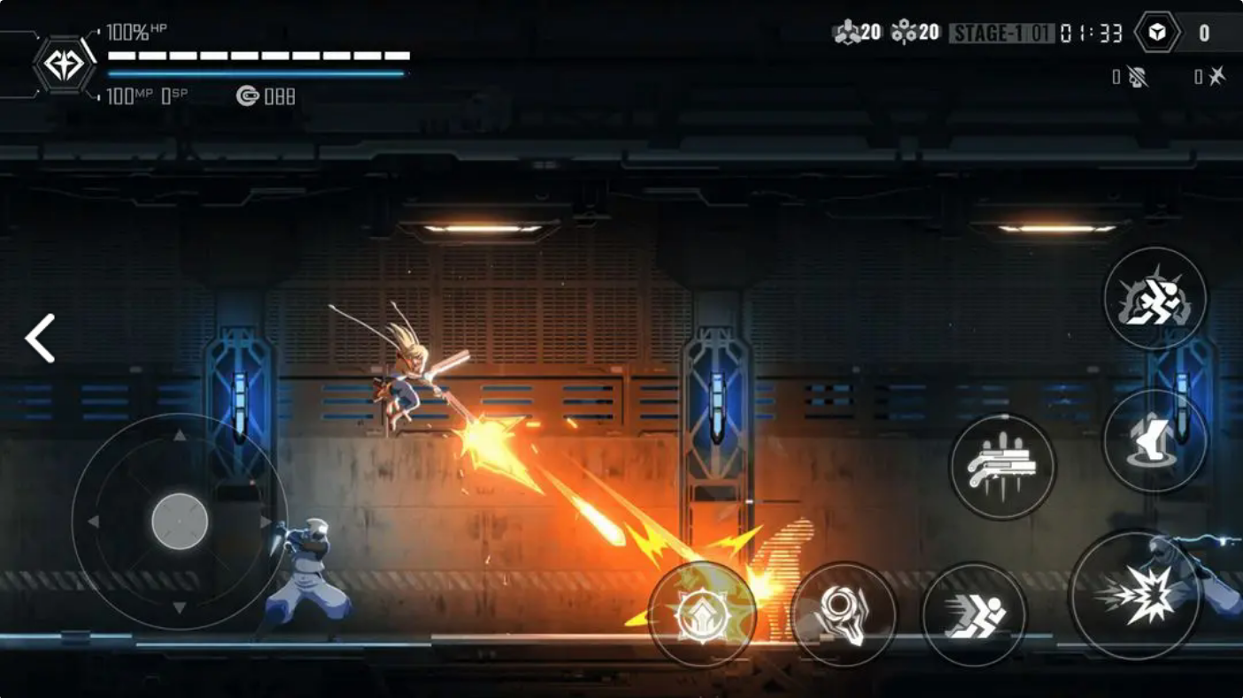 2.目前游戏中已有五名角色,另有五名角色正在开发中,对于苍翼系列的老玩家来说,这些角色应该都不陌生。每个角色都保留了原作中的一个主动技能,并配备了一套普攻连段、冲刺/冲刺攻击、跳跃/跳跃攻击等动作。