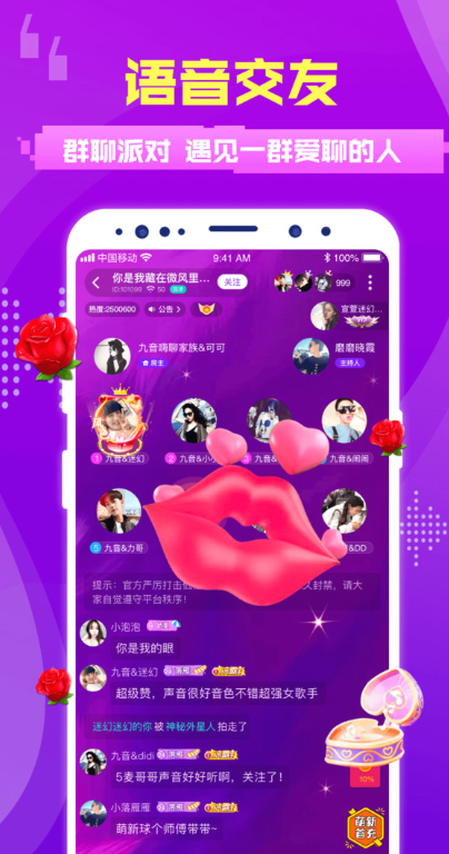 4、一键速配,一键的速配的功能都在里面,让你找到你与自己进行语音连麦的小伙伴